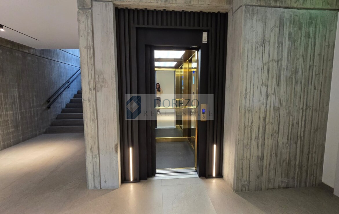 It is situated in a brand new high stantar building on the first floor .