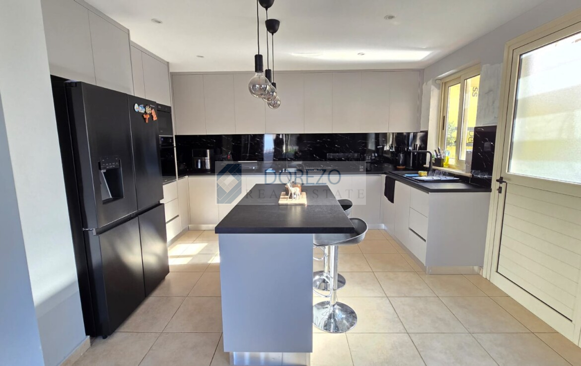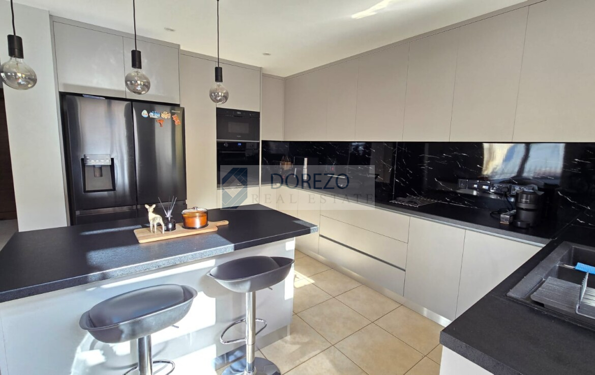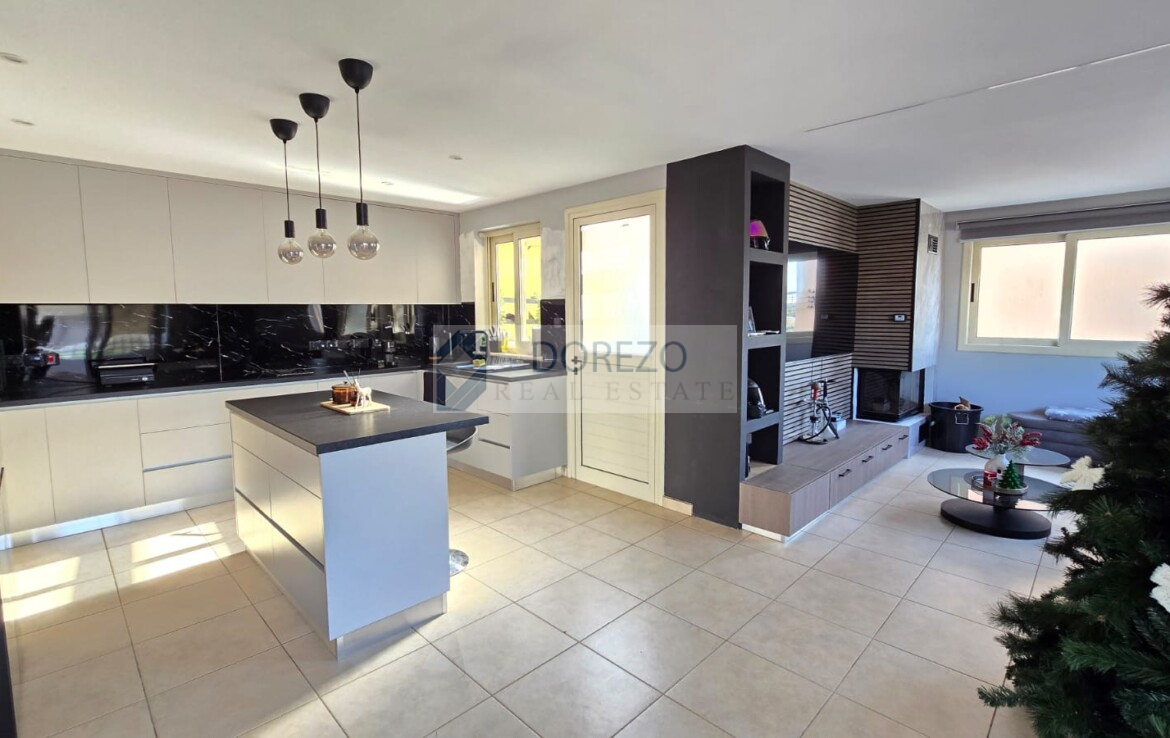 Open plan kitchen with living room